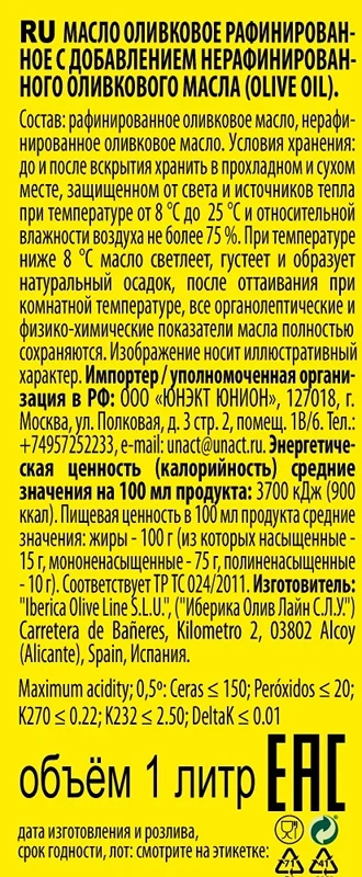 Масло подсолнечное Олейна с добавлением оливкового масла, 1л