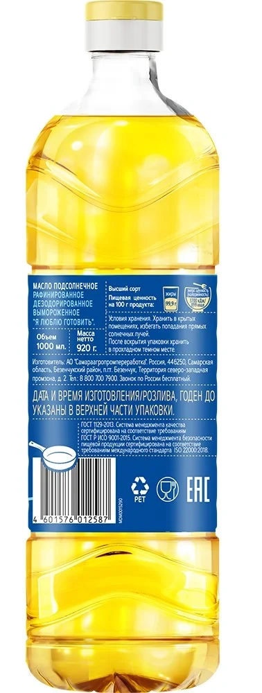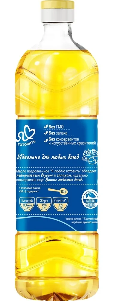 Масло подсолнечное Я люблю готовить рафинированное дезодорированное, 1л