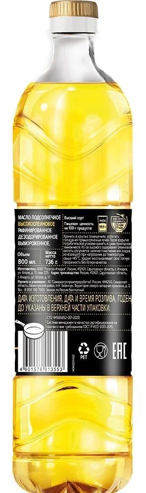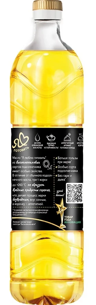 Масло подсолнечное Я люблю готовить рафинированное дезодорированное высокоолеиновое, 800мл