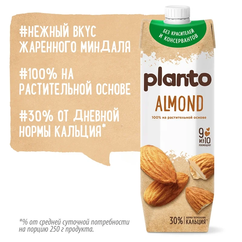 Ореховый напиток Planto миндальный с кальцием, 1л