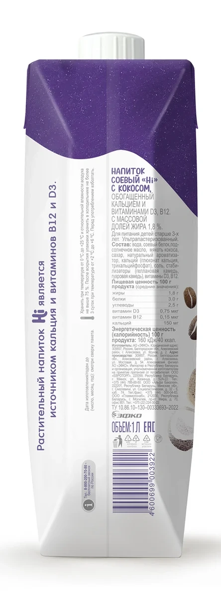 Напиток соевый Hi Barista кокосовый 1.8%, 1л