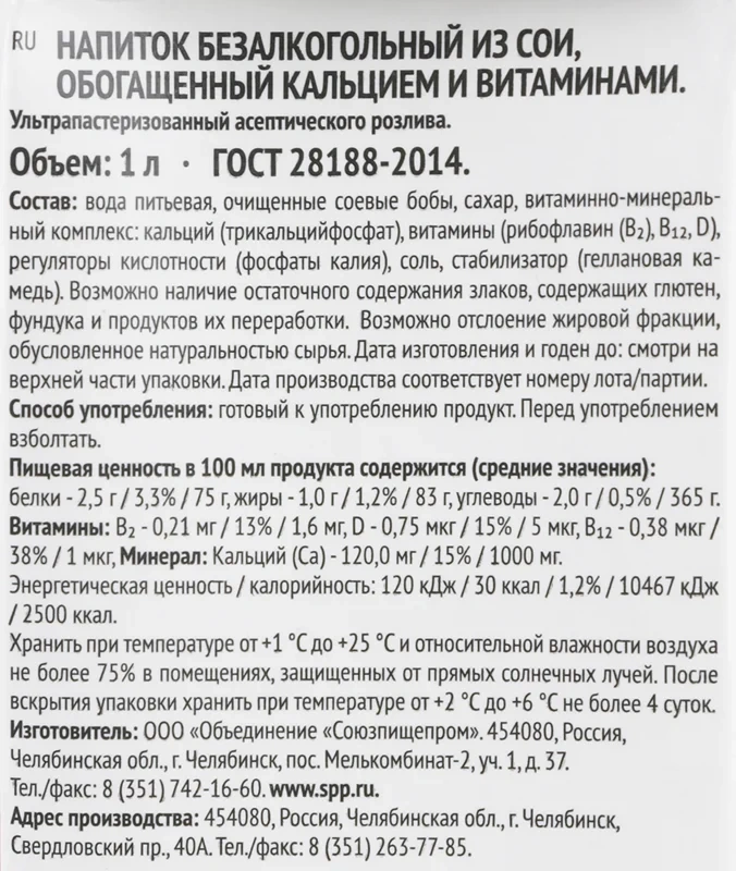 Напиток растительный соевый Green Milk Soya Professional 1%, 1л