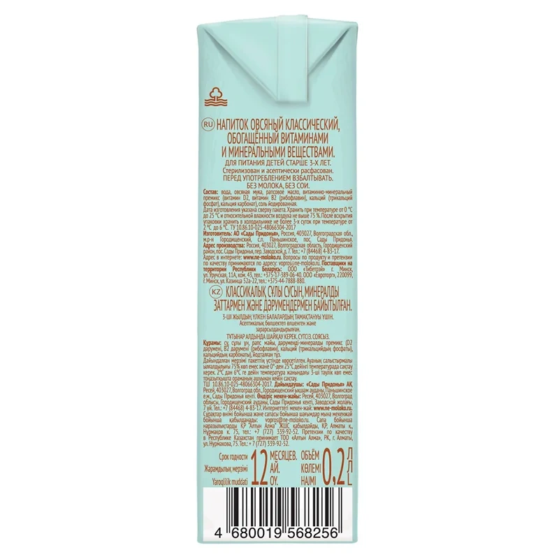 Напиток растительный овсяный Nemoloko Классический 3.2%, 200мл
