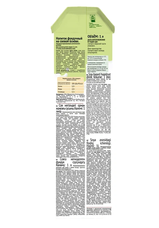 Напиток фундучный Green Milk Barista Соевая основа ультрапастеризованный, 1л