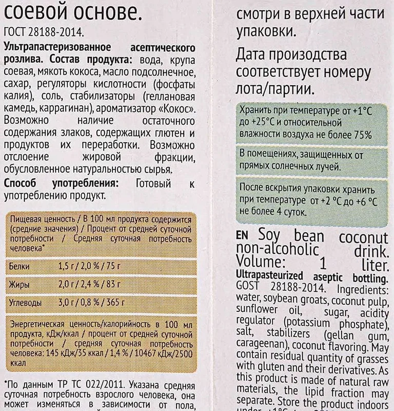 Напиток растительный кокосовый Green Milk Professional на соевой основе, 1л