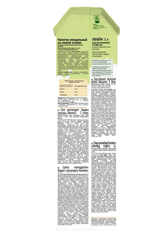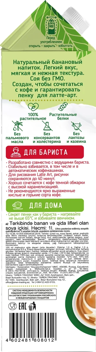 Напиток миндальный Green Milk Barista Соевая основа ультрапастеризованный, 1л
