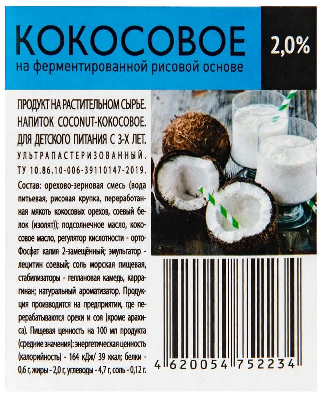 RIOBA Напиток растительный кокосовый 2%, 1л