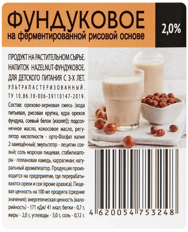 Ореховый напиток Zinus Barista 1л, фундуковый