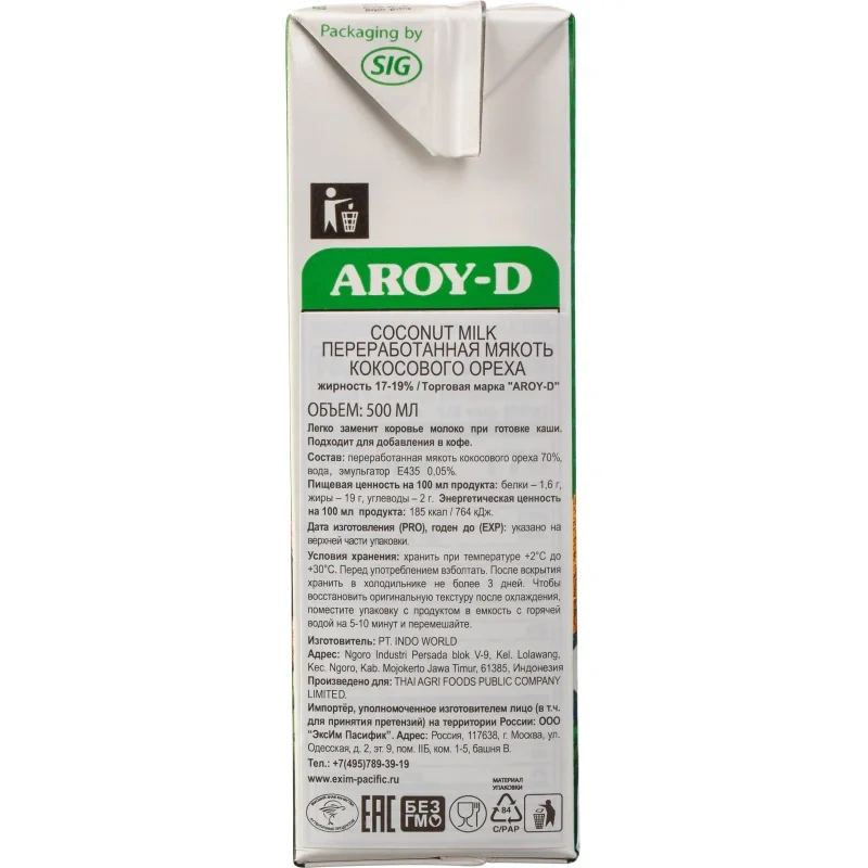 Кокосовое молоко Aroy-D Coconut Milk 17-19%, 1л