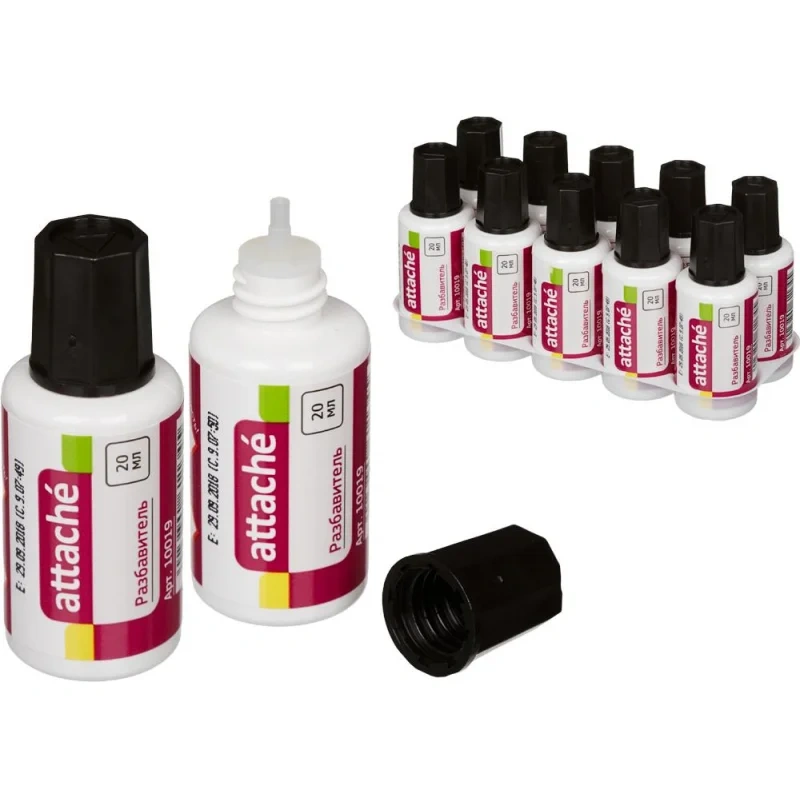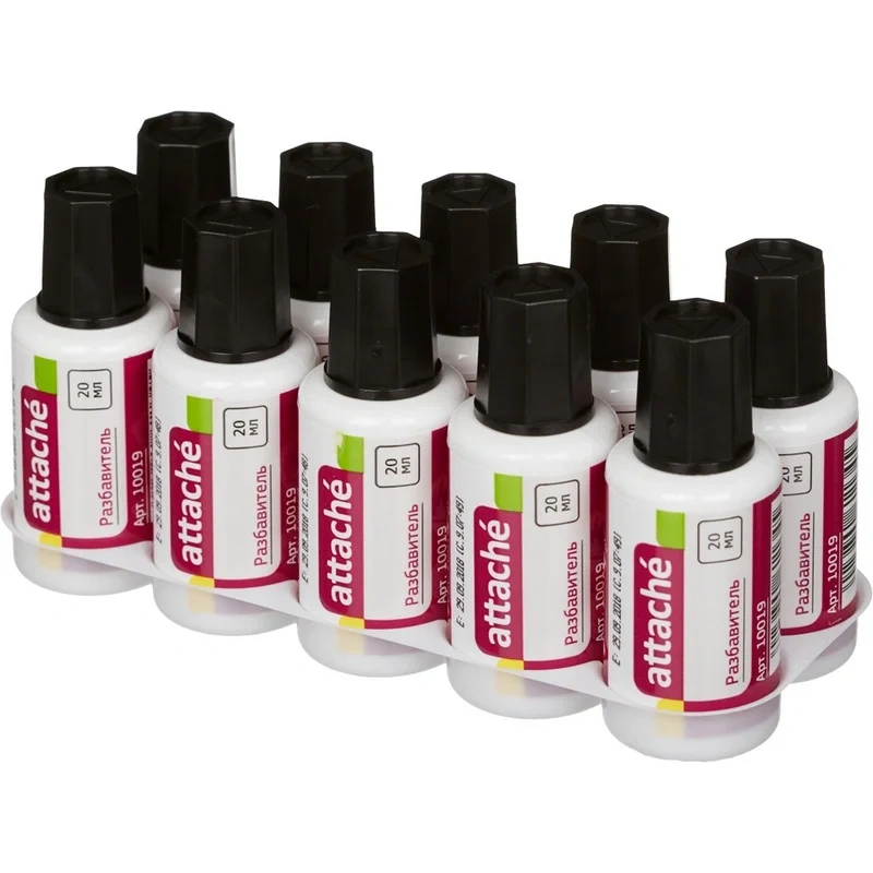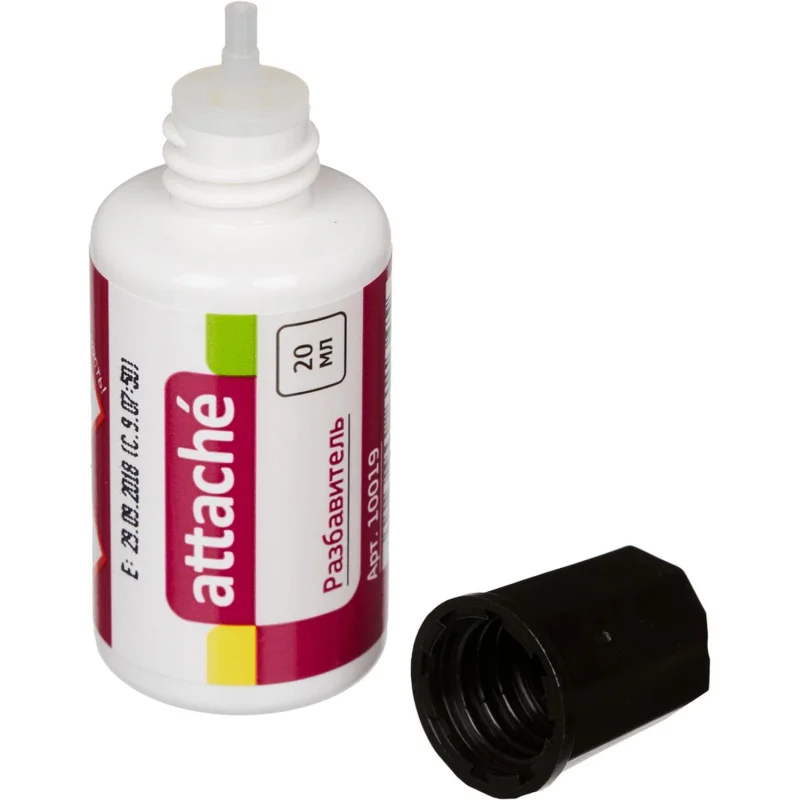 Разбавитель Attache на быстросохнущей основе предназначен для разведения корректирующей жидкости. Добавляется в небольших количествах только по необходимости. Объем — 20 мл.