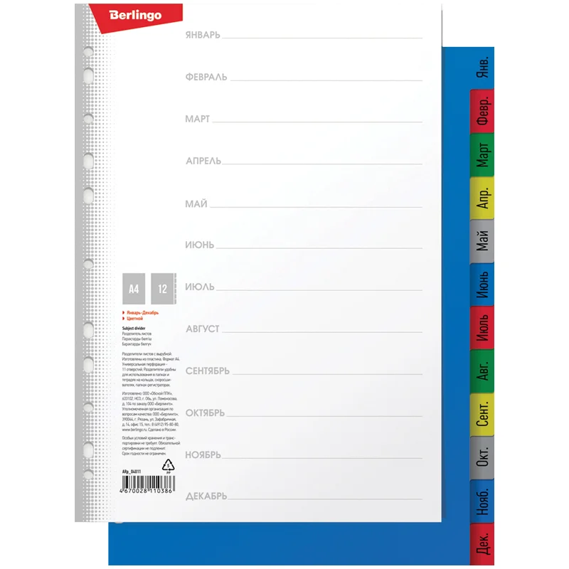 Разделитель листов Berlingo 12 разделов, А4, 4011