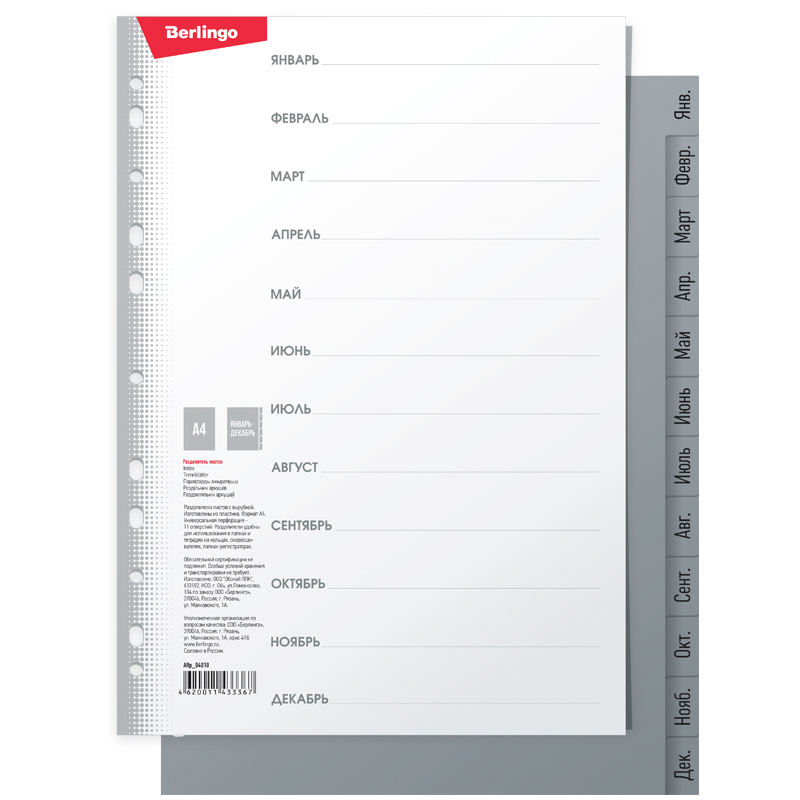 Разделитель листов Berlingo 12 разделов, А4, по месяцам Янв-Дек