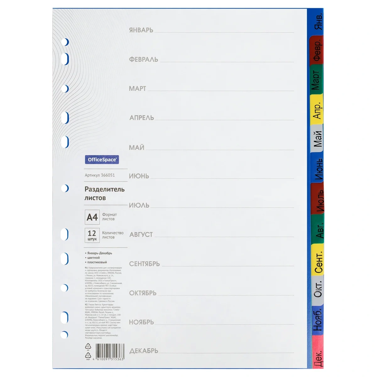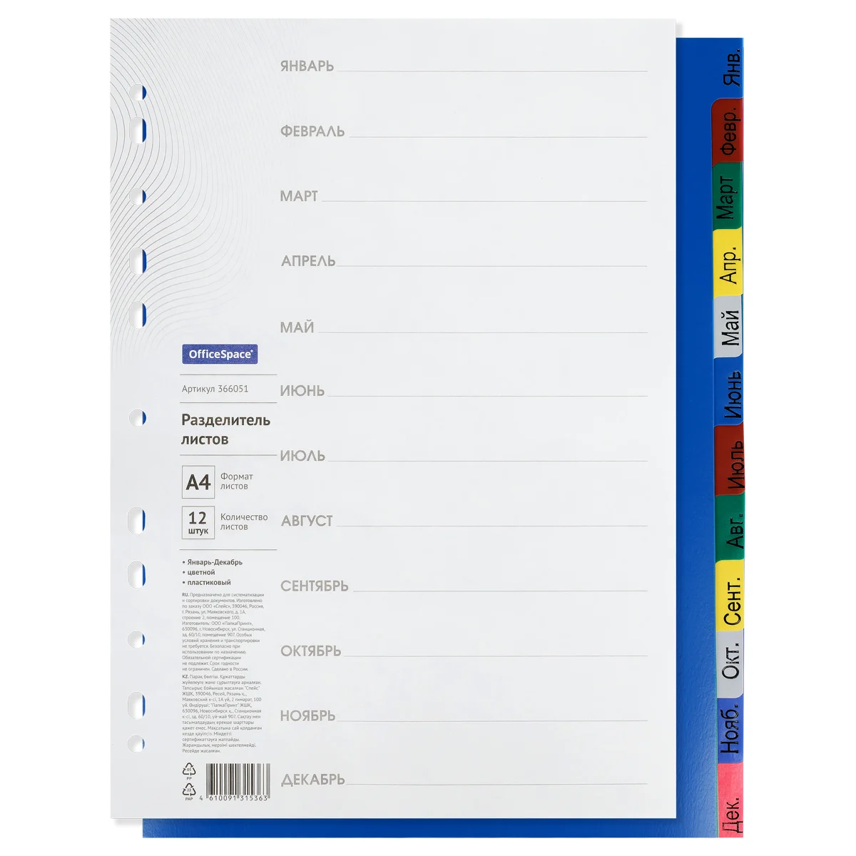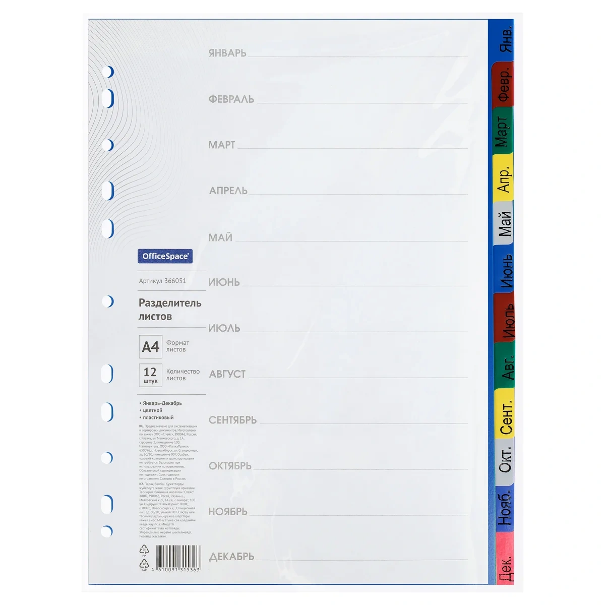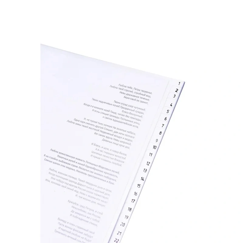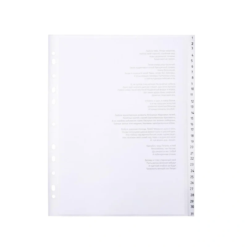 Набор разделителей. Формат А4. Обеспечивают сохранность и аккуратность листов. Удобны в использовании с папками-регистраторами и на кольцах.