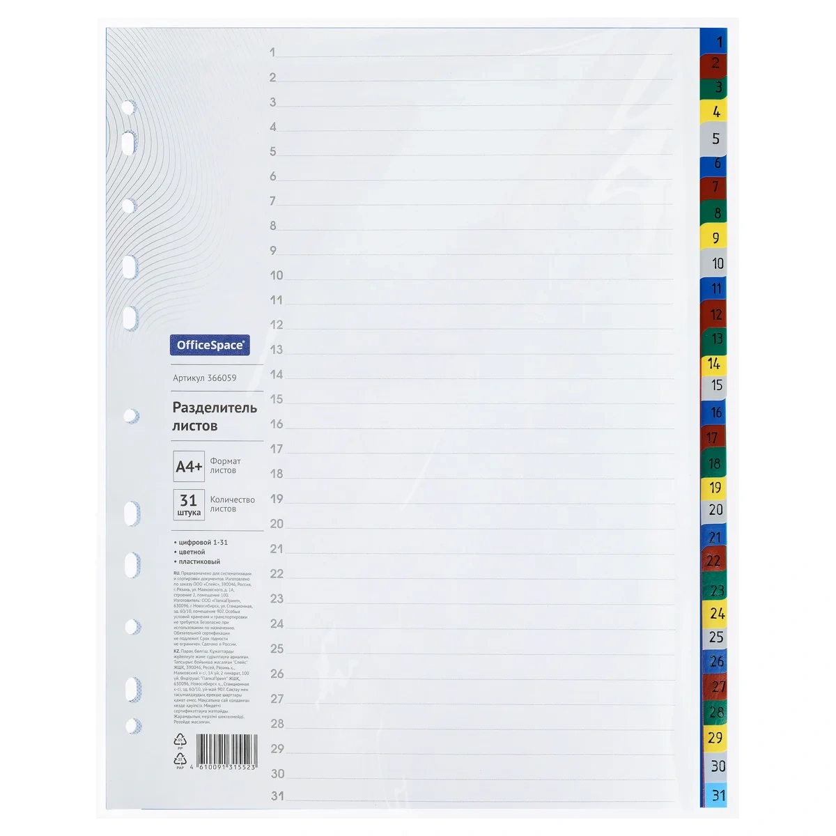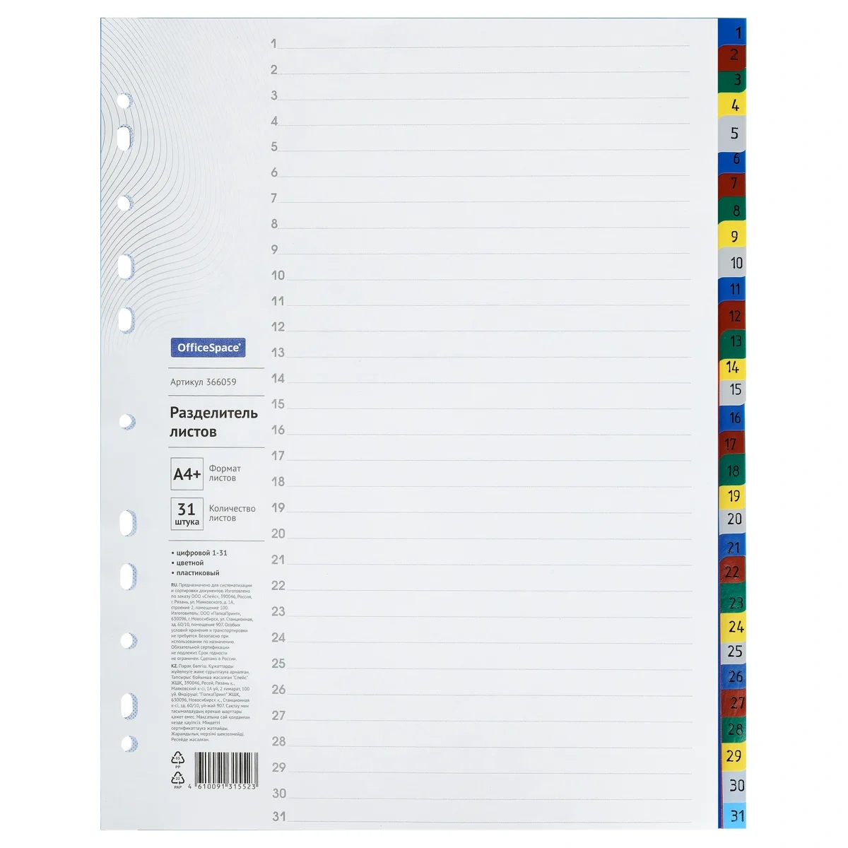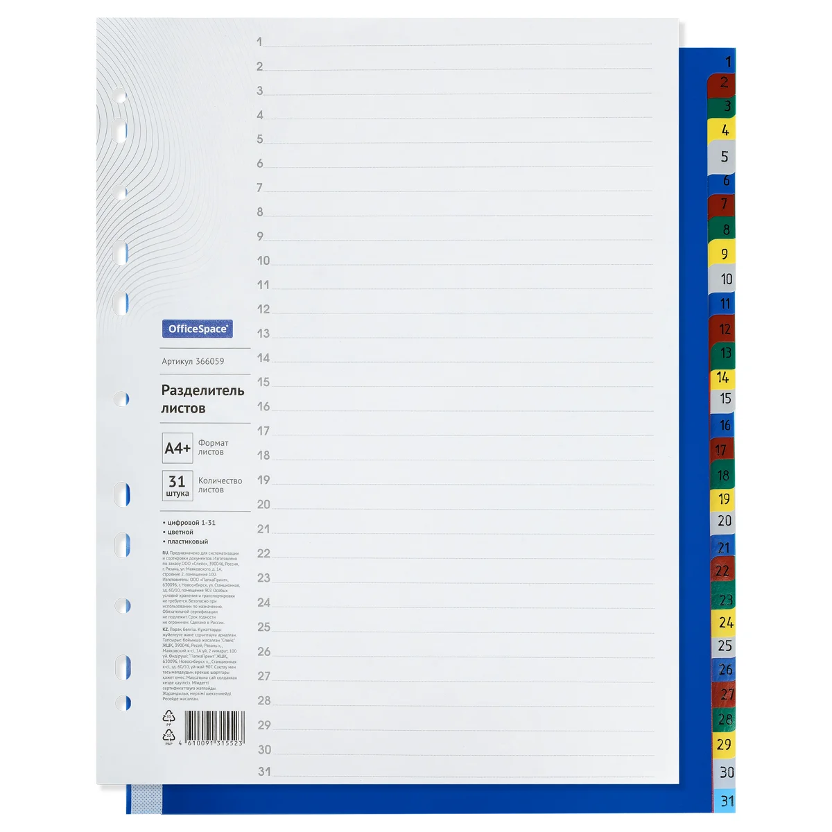 Разделитель листов Berlingo 31 раздел, А4