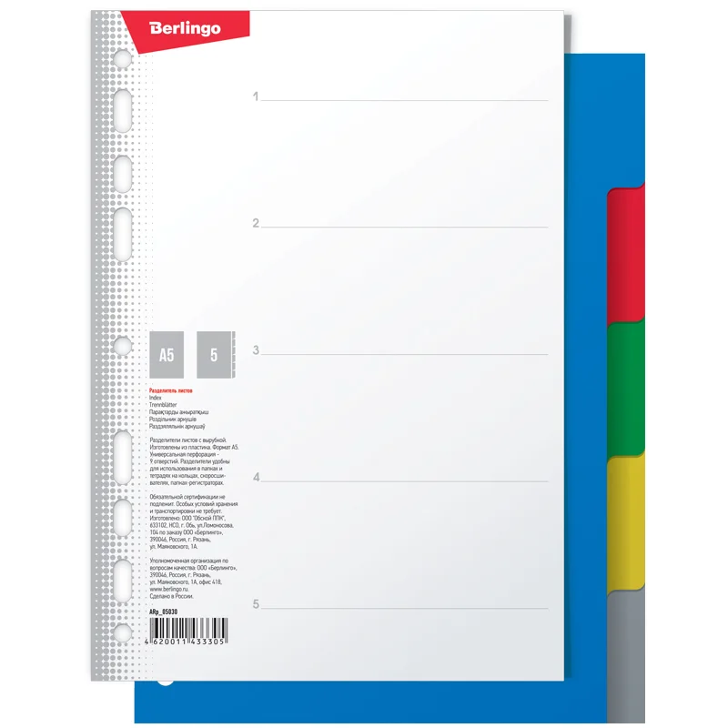 Разделитель листов Berlingo 5 разделов, А5
