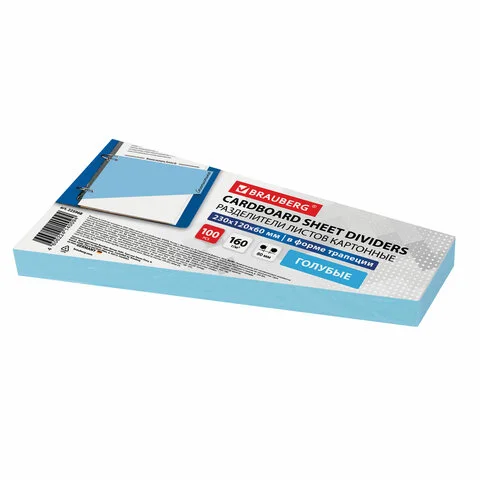 Разделитель листов Brauberg голубые, 100 разделов, трапеция 230х120х60 мм