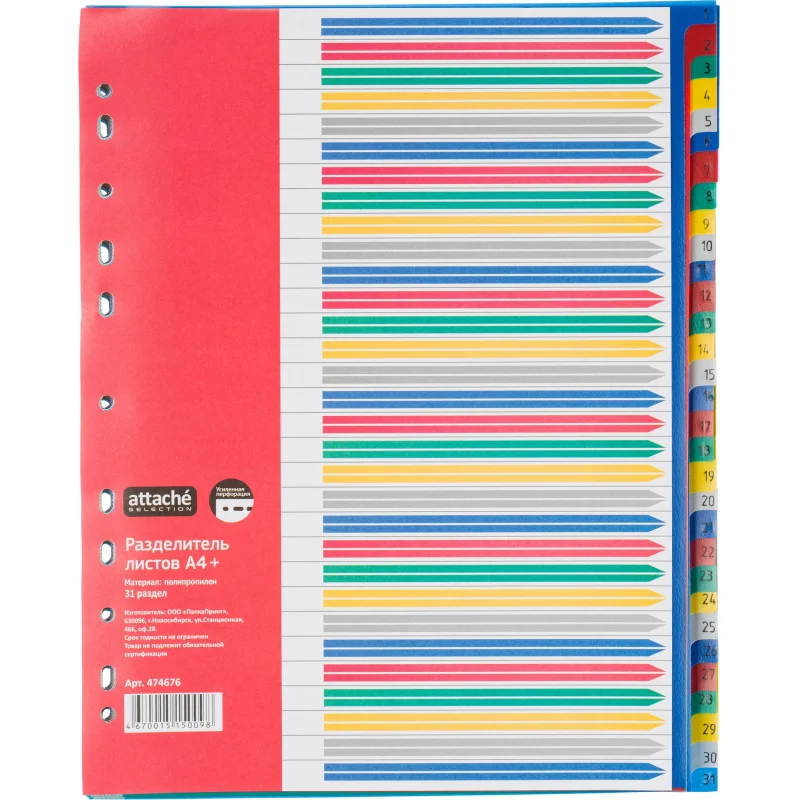 Разделитель листов Attache Selection 31 раздел, А4+, пластик