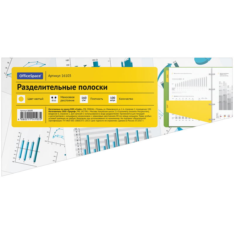Разделитель листов Officespace желтые, 100 разделов, 230х120 мм