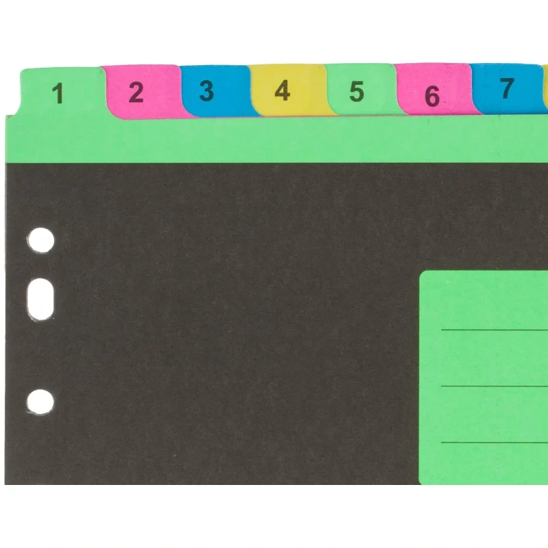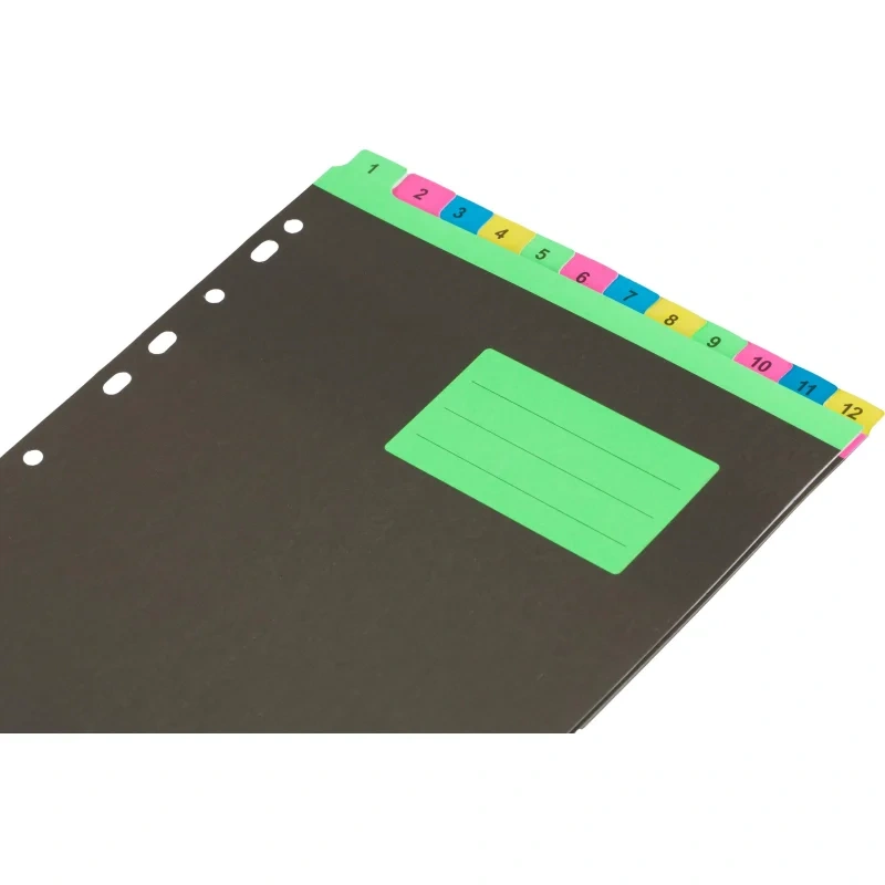 Разделители листов с индексами 1-12 Attache Selection формата А4 изготовлены из прочного картона. Размер — 312?210 мм. Толщина листов — 180 мкр. Универсальная перфорация совместима с различными типами папок. В комплекте 12 листов с ярлыками цвета ’Неон’ расположенными сверху и нанесением индексации, а также титульный лист для удобства и быстроты поиска.
