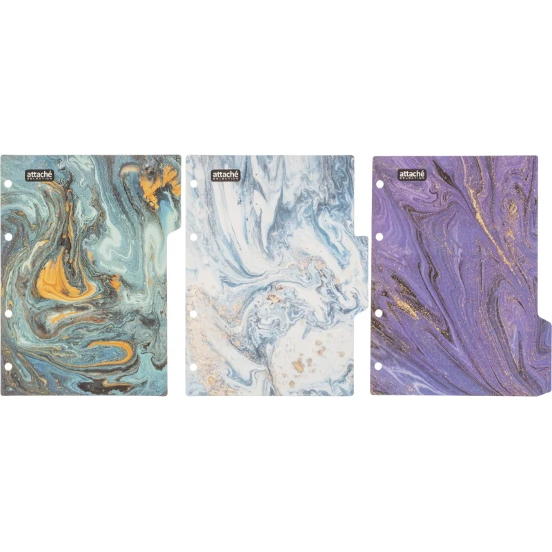 Разделители листов Attache Selection Fluid формата А5 изготовлены из пластика. Ориентированы вертикально. Разделители для блочных тетрадей. Ваша документация будет всегда сортирована, как Вам нужно и будет содержаться в полном порядке. Универсальная перфорация подходит для различных механизмов сшивания. В упаковке 3 цветных разделителей листов.