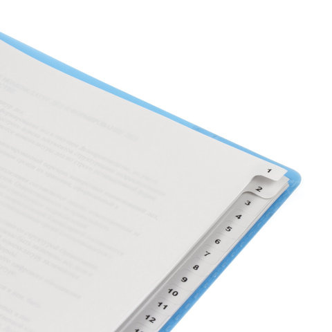 Изготовлены из пластика толщиной 0,12 мм. В комплект входит 31 лист серого цвета, обеспечивающих возможность сортировки документов по цифрам, а также титульный лист для оглавления. Универсальная перфорация позволяет подшивать разделители во все типы папок. Размер - 224х297 мм.