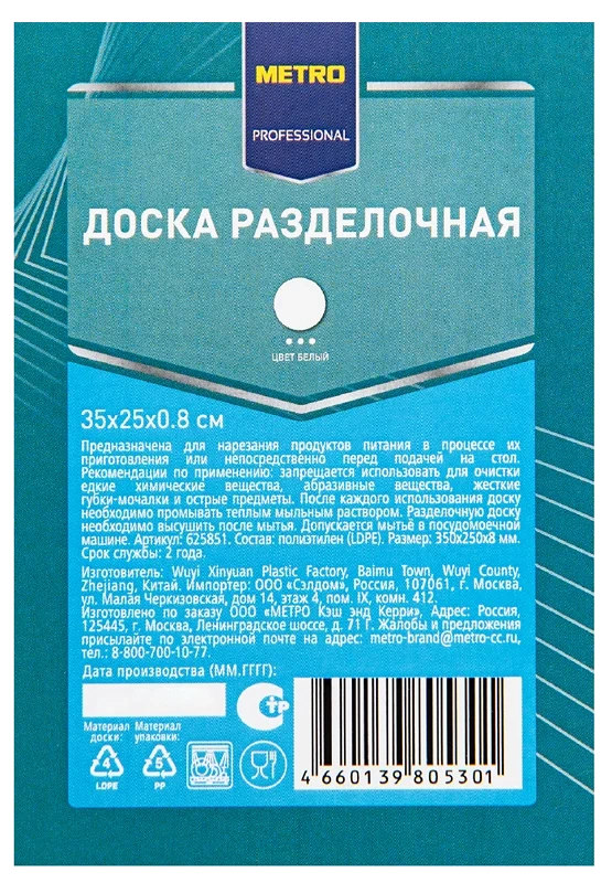 METRO PROFESSIONAL Доска разделочная белая, 32 x 26 x 2см