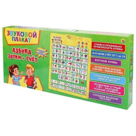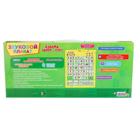Плакат со звуком 'Азбука, звуки и счет' на батарейках, 41х56 см, 4 режима, РЫЖИЙ КОТ, ЗП-2699