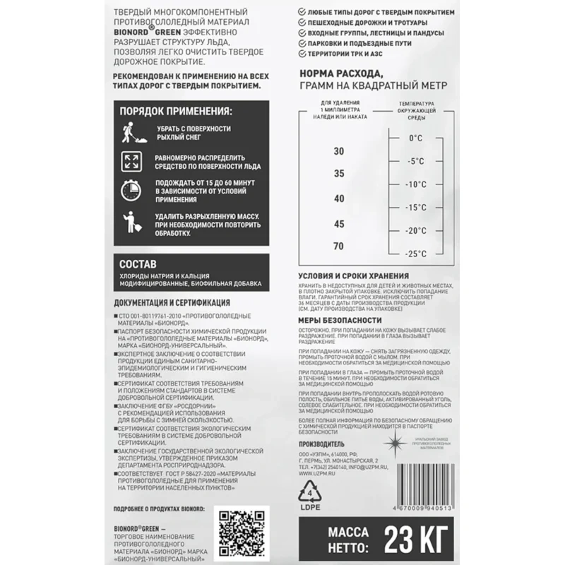 — Паспорт безопасности Противогололедный материал ’Бионорд универсальный’ РПБ No80119761-20-55490, срок действия до 20.02.24 г.