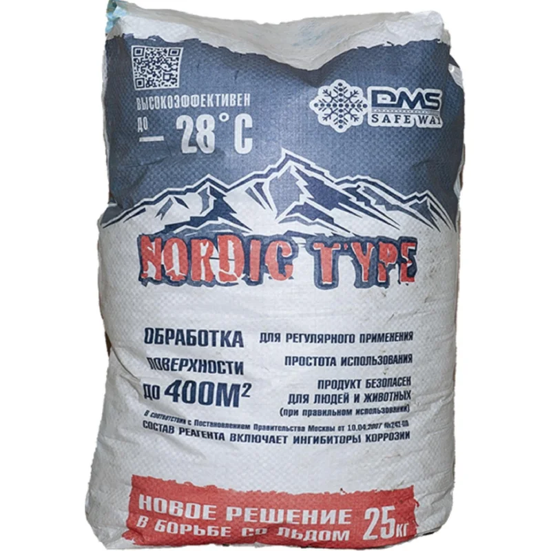 Реагент противогололёдный DMS Safe Way Nordric Type — химический реагент, предназначенный для эффективной борьбы с гололедицей. Этот продукт идеально подходит для применения в местах массового скопления людей, на тротуарах, пешеходных дорожках, площадках торговых, офисных и жилых зданий, а также в местах развлекательной индустрии, парковых зонах и дачных участках. Реагент активно используется для предотвращения образования льда и для удаления уже образовавшегося льда при морозах до −28°C.