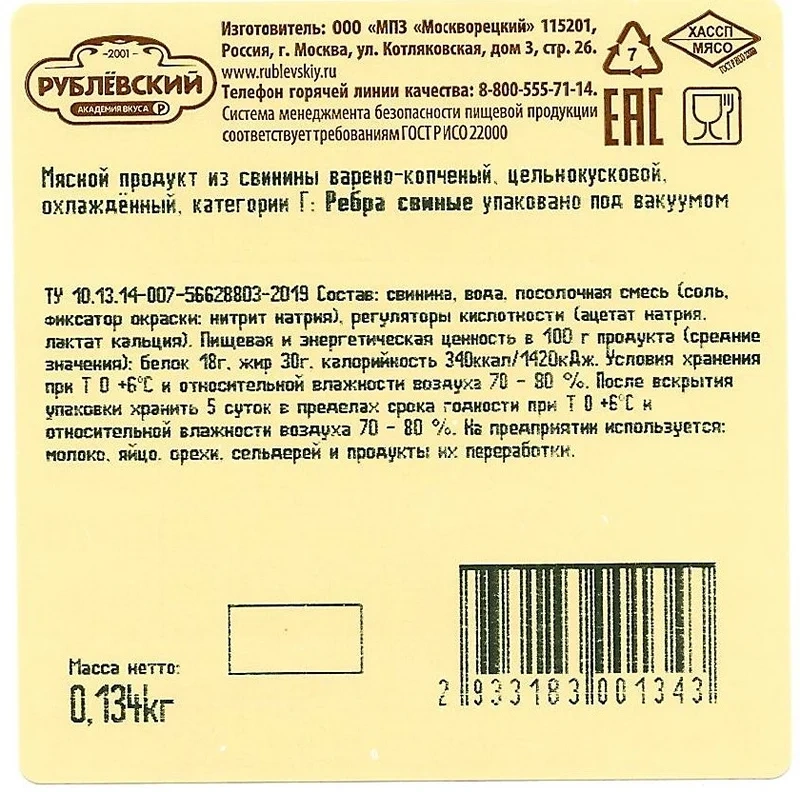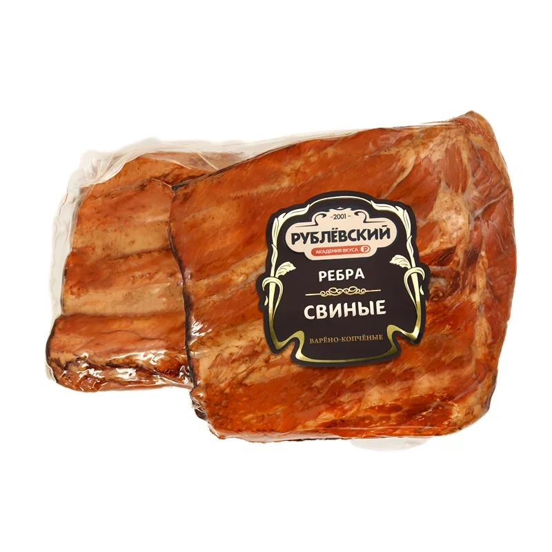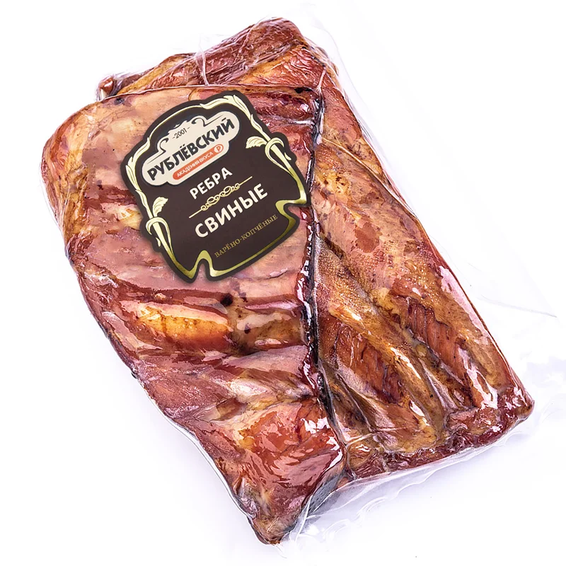 Ребра свиные Рублевский варено-копченые цельнокусковые охлажденные, ~150г