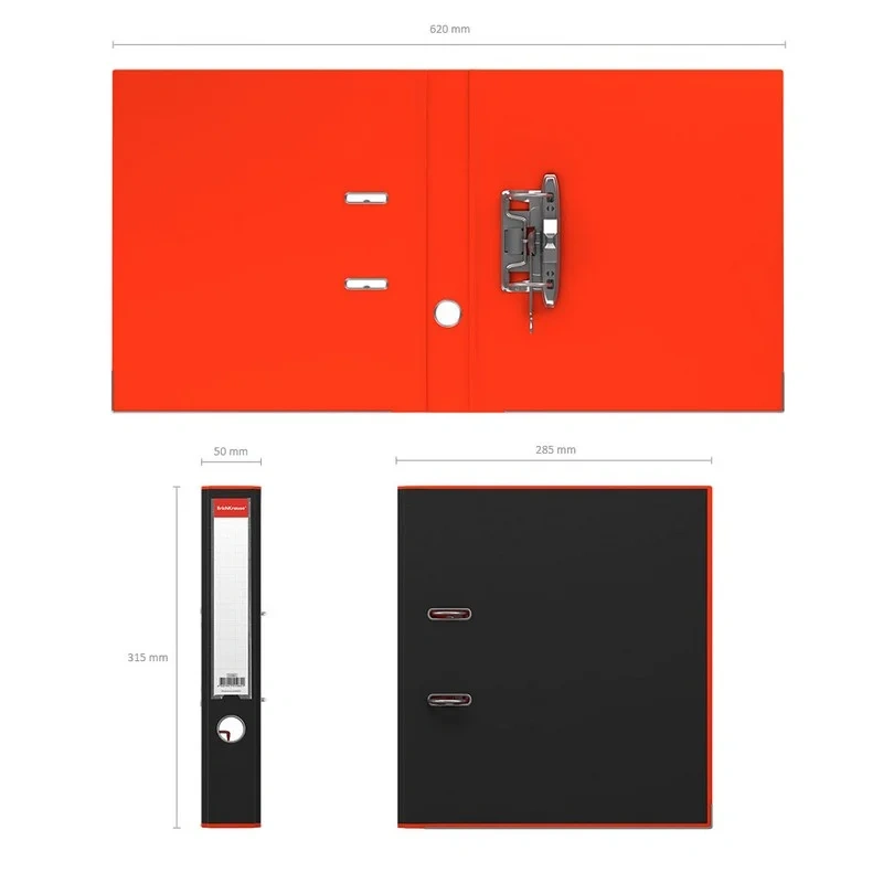 Папка - регистратор формата А4 снабжена стальным арочным механизмом с никелевым покрытием. Изготовлена из плотного картона, покрытого с двух сторон бумагой со структурным тиснением и водоотталкивающей поверхностью. Корешок папки шириной 50 мм оснащен прозрачным пластиковым карманом со сменной этикеткой для маркировки. Для удобства использования на корешке имеется металлическое кольцо для захвата. Металлические фиксаторы удерживают папку в закрытом виде даже при максимальном наполнении. Вместительность до 350 листов бумаги плотности 80 г/м. На форзаце есть шаблон для оглавления. в ярких неоновых цветах. Элегантный дизайн построен на контрасте черной внешней стороны папки и яркой внутренней.