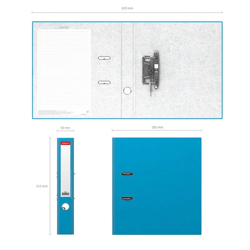Папка - регистратор формата А4 снабжена стальным арочным механизмом с никелевым покрытием. Изготовлена из плотного картона толщиной 2 мм, покрытого бумагой со структурным тиснением и водоотталкивающей поверхностью. Корешок папки шириной 50 мм оснащен прозрачным пластиковым карманом со сменной этикеткой для маркировки. Для удобства использования на корешке имеется металлическое кольцо для захвата. Металлические фиксаторы удерживают папку в закрытом виде даже при максимальном наполнении. Вместительность до 350 листов бумаги плотности 80 г/м. На форзаце есть шаблон для оглавления. Коллекция представлена в ярких неоновых цветах.