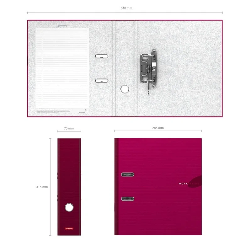 Регистратор ErichKrause, Work inside, А4, 70 мм, бордовый