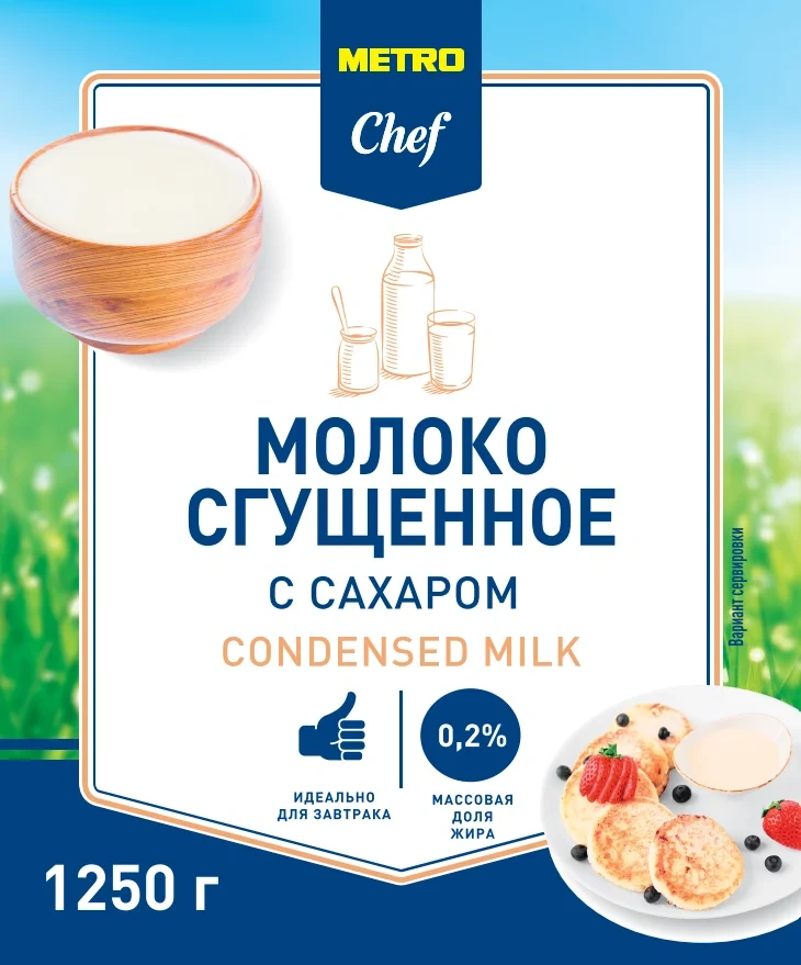 Молоко сгущенное Metro Chef 0,2% бзмж, 1250 г изготовлено на основе натурального цельного и обезжире...
