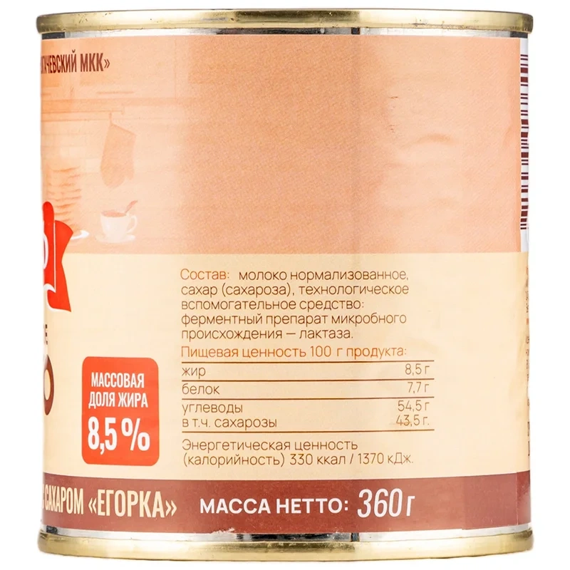 Молоко сгущенное Рогачев Егорка вареное с сахаром 8.5%, 360г