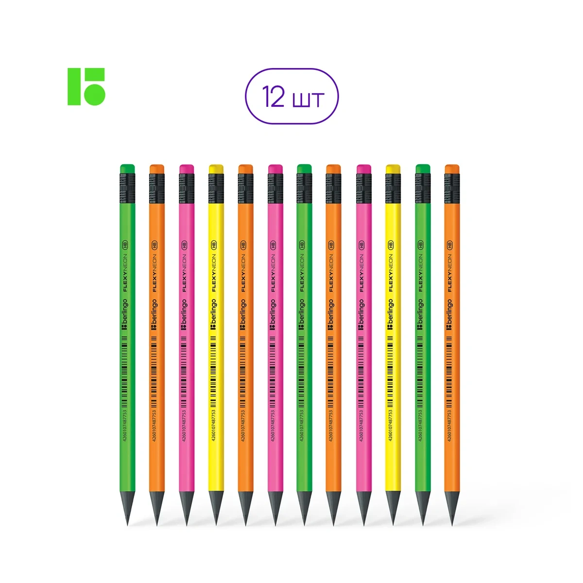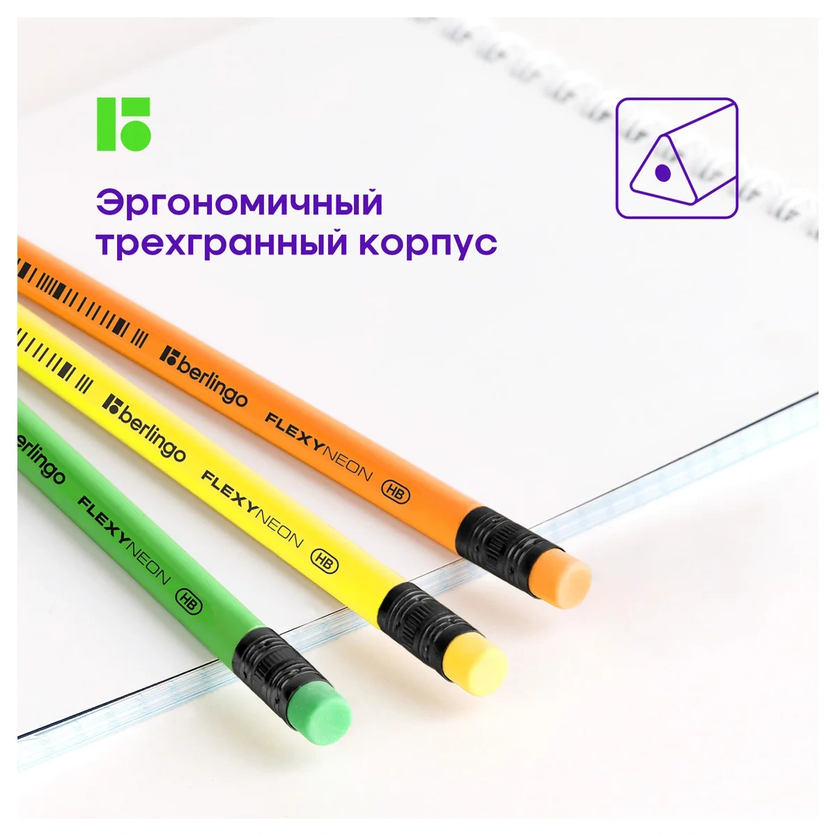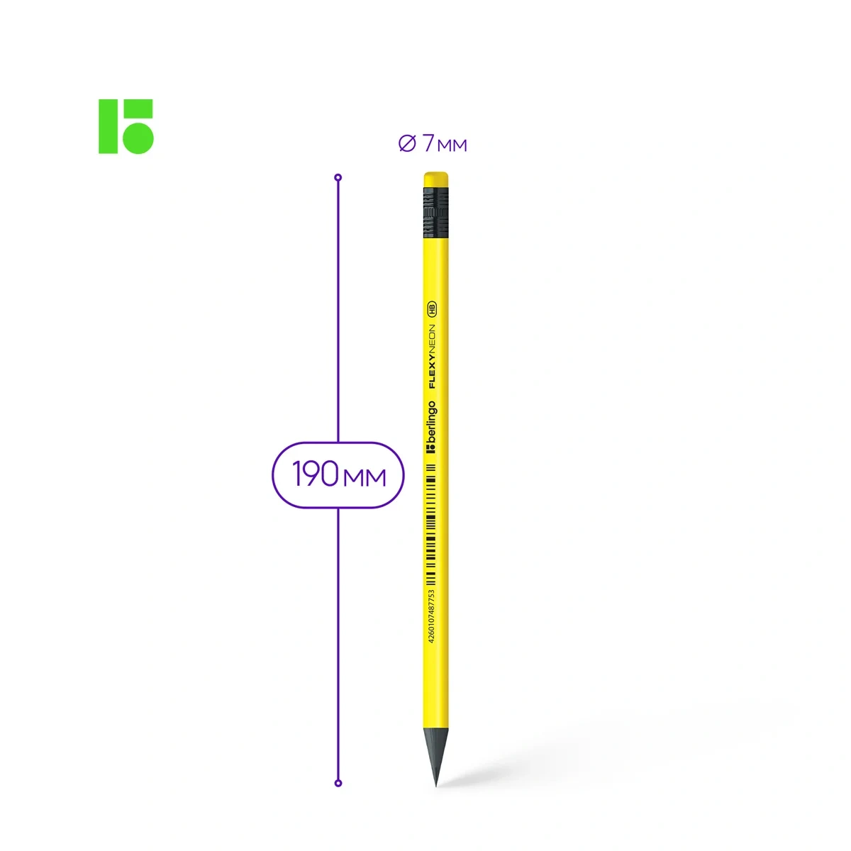 Карандаш чернографитный Berlingo Flexy Neon HB, с ластиком, ассорти