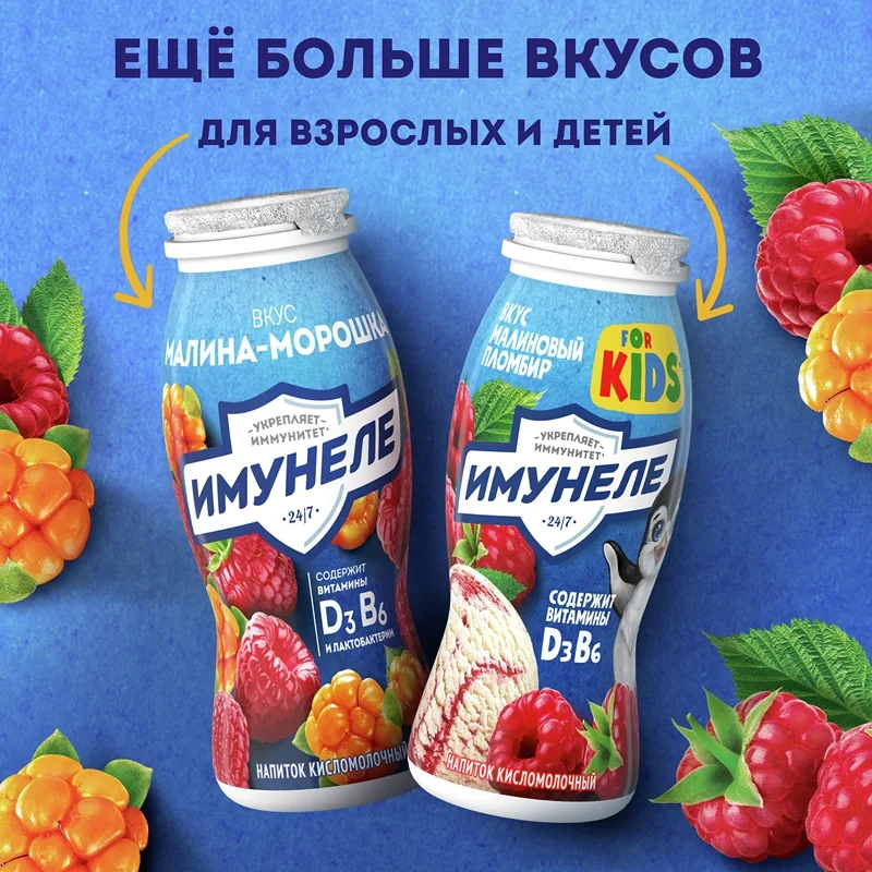 Напиток кисломолочный Имунеле с земляникой 1.2%, 100г x 6 шт