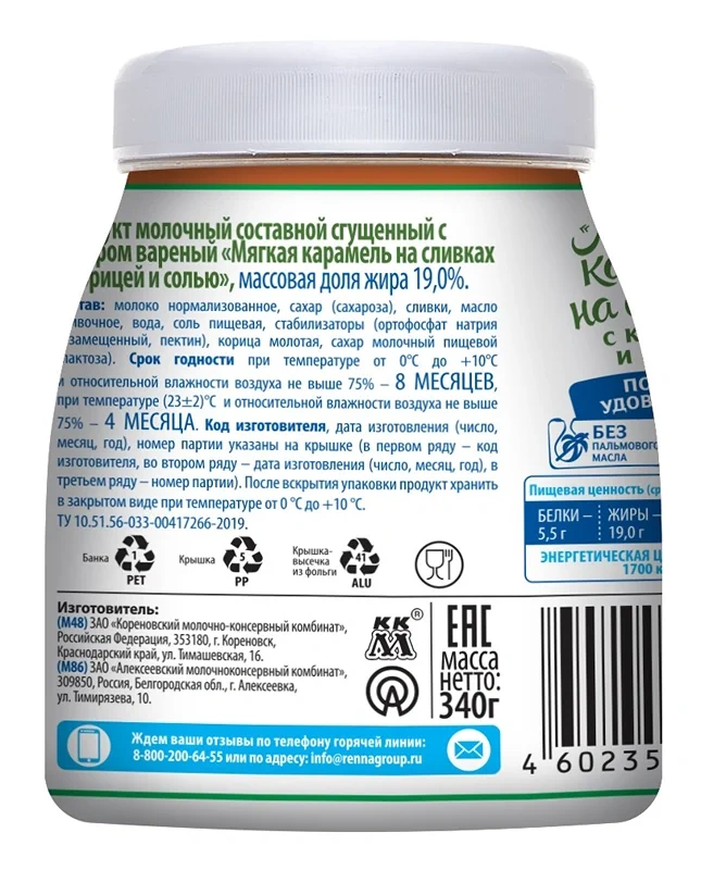 Мягкая карамель Коровка из Кореновки на сливках с корицей и солью 19%, 340г