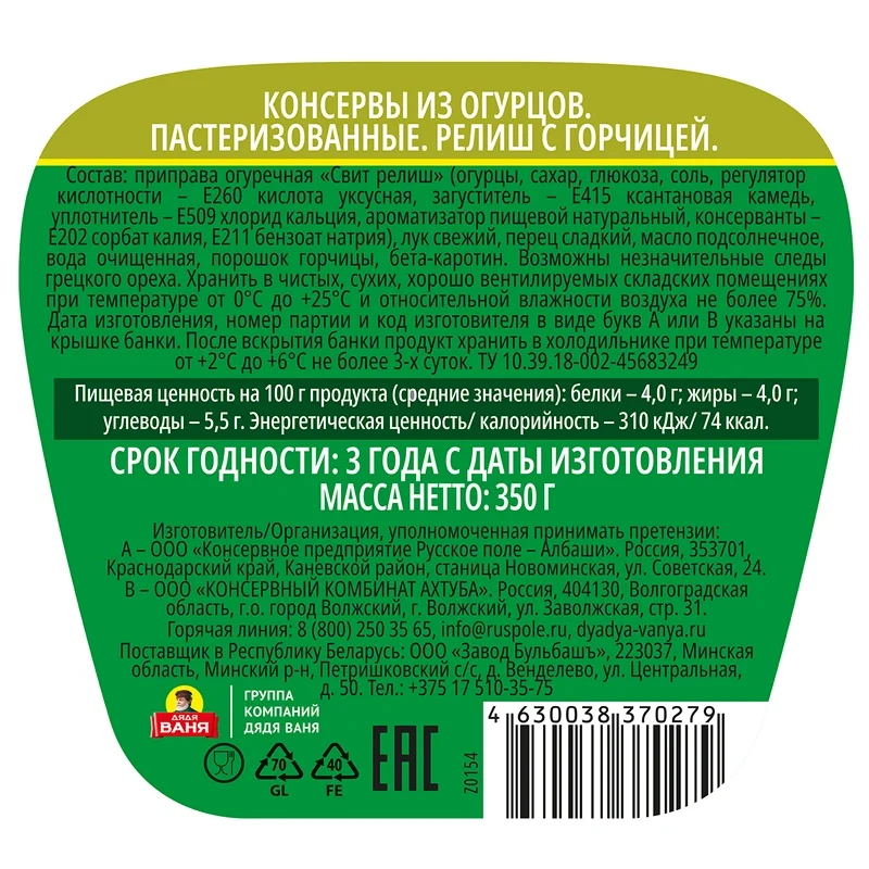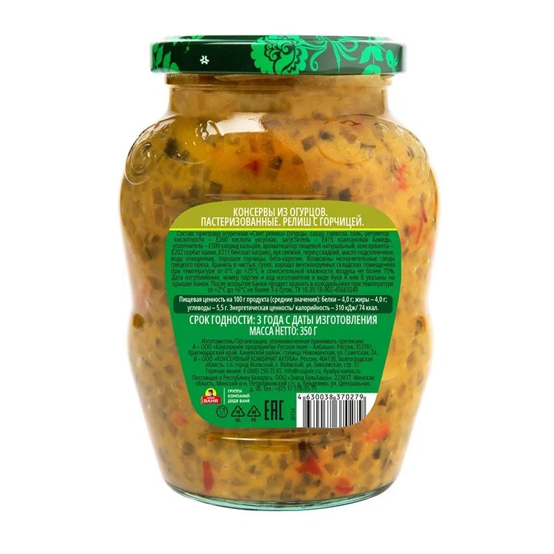 Релиш Дядя Ваня с огурцами и горчицей, 350г