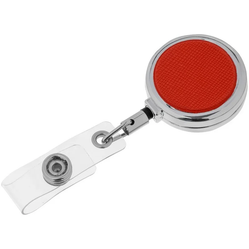Ретрактор крепится к одежде, а с другой стороны можно поместить бейдж, визитку или магнитную карту. В корпусе спрятан сворачивающийся шнур, который позволяет при необходимости демонстрировать содержимое держателя, не снимая его.Такой держатель может стать элементом корпоративного стиля. Материал: искусственная кожа, металл Размер: диаметр 3,2 см, длина шнура 60 см Цвет: красный