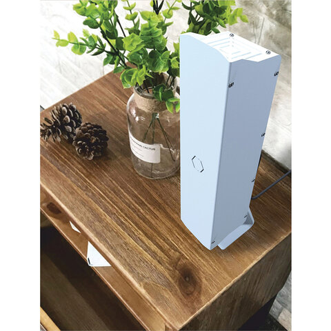 Обеззараживание происходит благодаря прохождению воздуха через ультрафиолетовые (УФ) лучи лампы, встроенной в прибор. УФ-лампа закрыта прочным металлическим корпусом, что позволяет пользоваться устройством в присутствии людей и домашних животных. Не выделяет озон. Удобное вертикальное размещение.