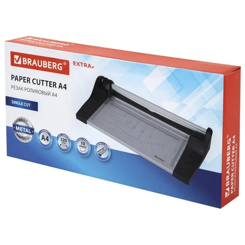 Резак роликовый BRAUBERG EXTRA A4, до 10 л, длина реза 320 мм, металлическое основание, 532325