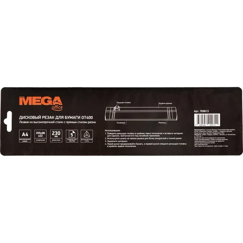 Резак роликовый для бумаги Mega ОТ400 А4, 330мм, до 5л