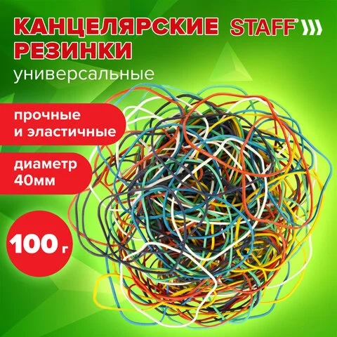 Резинки для денег Staff 40х1.5мм, 100г, цветные, натуральный каучук