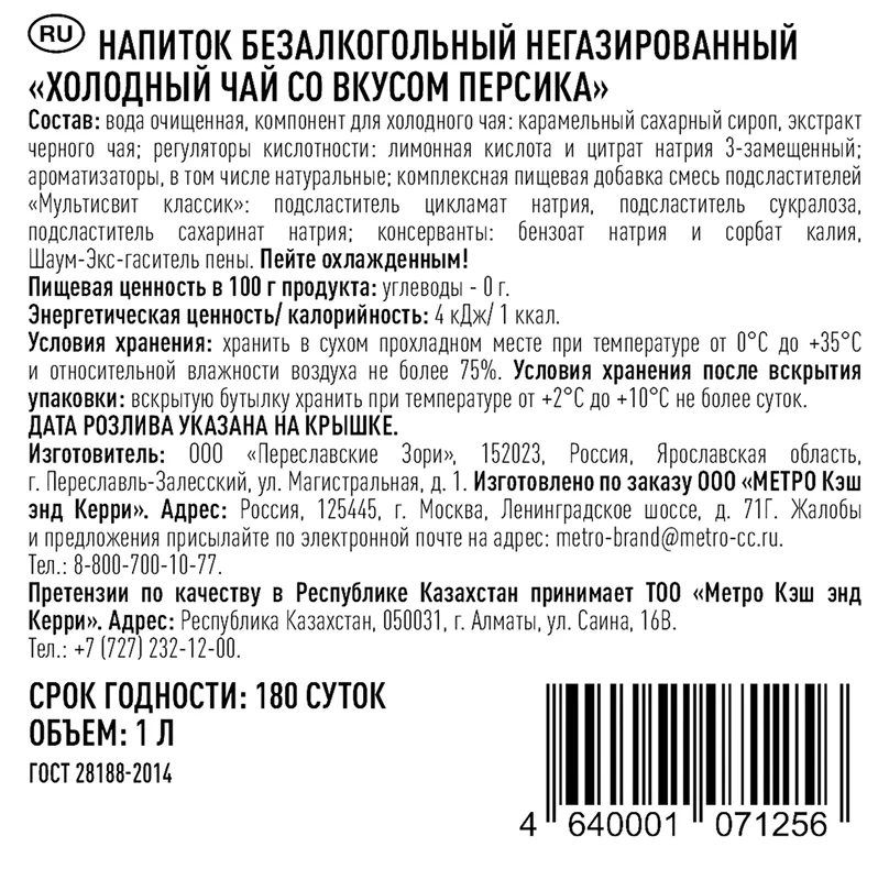 RIOBA Чай холодный персик, 1л изготовлен на основе натурального чайного экстракта из чайных листьев. Имеет в своем составе природные компоненты - чайные антиоксиданты, что делает его употребление полезным для здоровья, а свежий аромат и вкус персика подарит приятное послевкусие. Рекомендуется пить охлажденным. Это холодный черный чай со вкусом персика, который отлично освежает жарким летним днем.