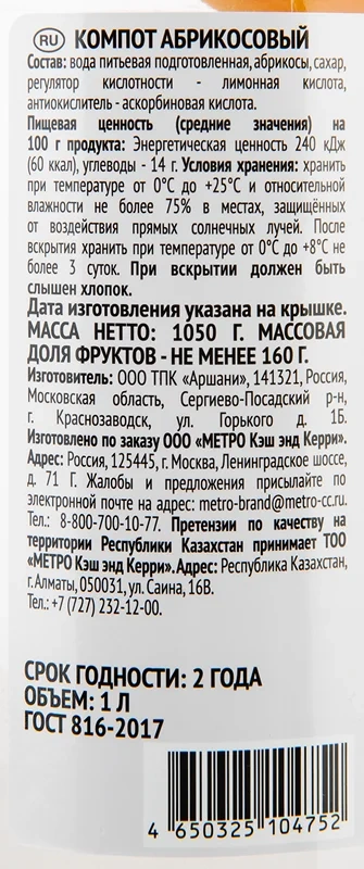 | Рекомендуемая температура хранения, C | от 0 до +25 |