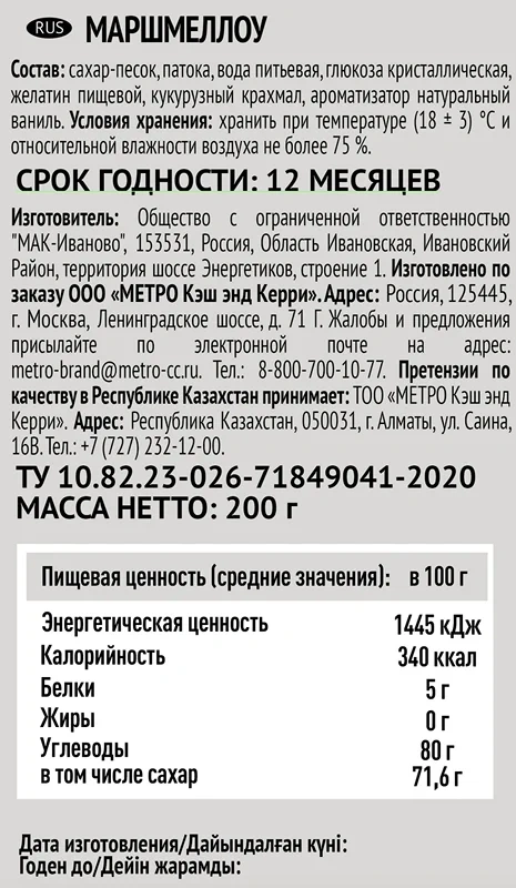 RIOBA Маршмеллоу, 200г