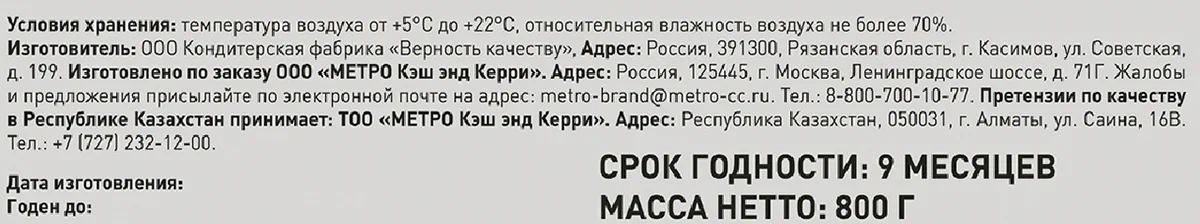 | Рекомендуемая температура хранения, C | от +5 до +22 |