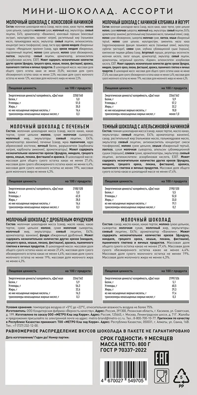 RIOBA Мини-шоколад Ассорти 6 вкусов, 800г