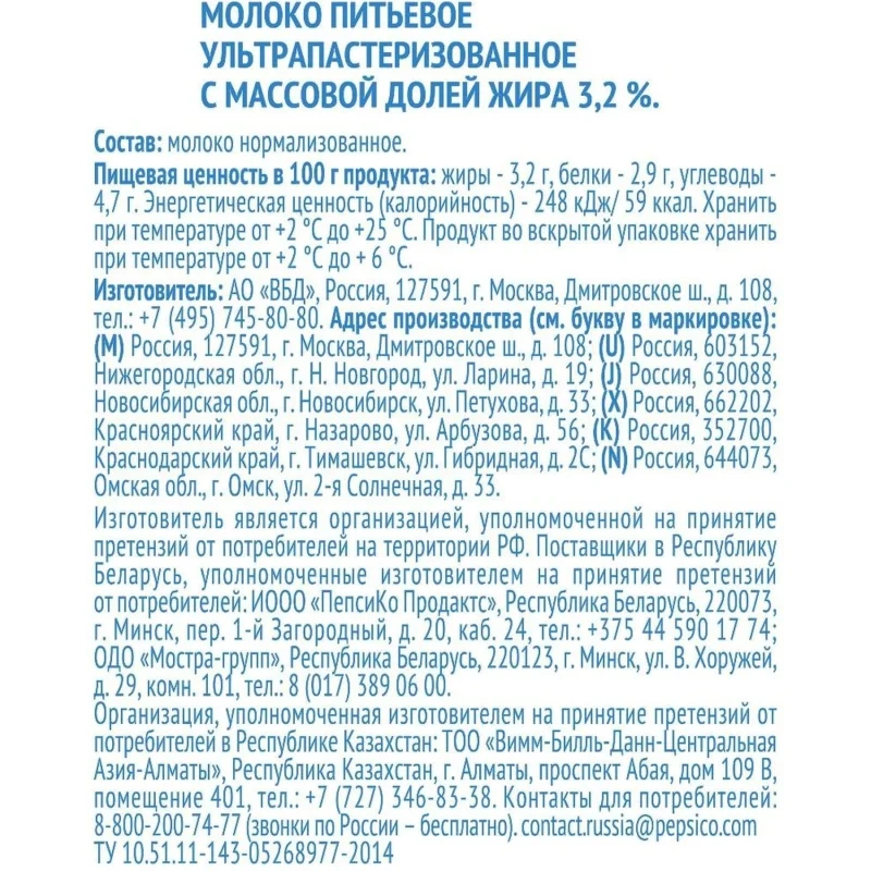 Продукт разлит в удобную в использовании упаковку, за счет чего занимает минимум места на полке холодильника и исключает возможность проливания жидкости.